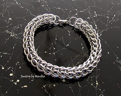 I've started this chain maille bracelet about a month ago, but life happened, so I had to put it aside until now. As I'm going on holidays next week, I wanted to finish it by then, as it will travel with me, on my wrist.